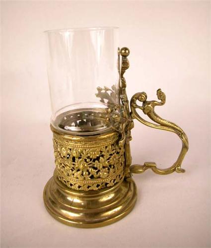 A BRASS CHAMBERSTICK, FRENCH WITH GLASS GLOBE; 6 1/4" h