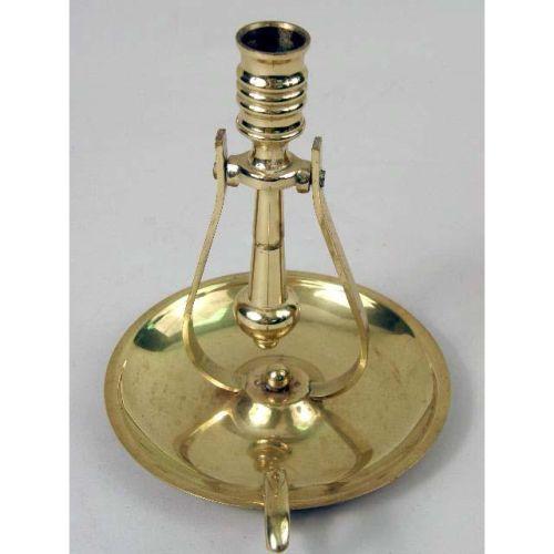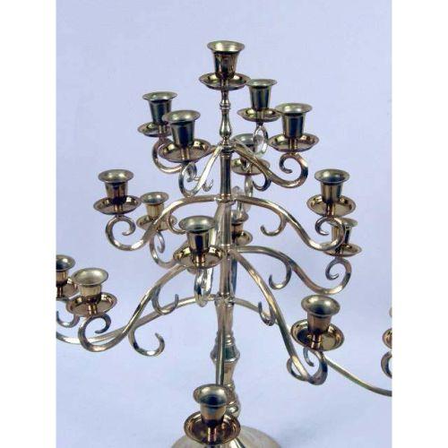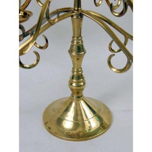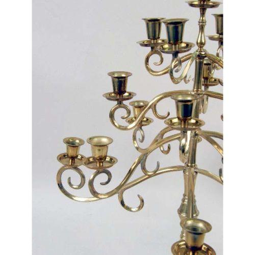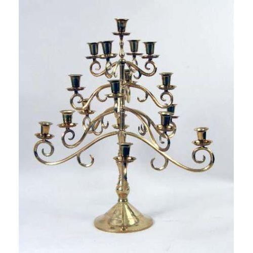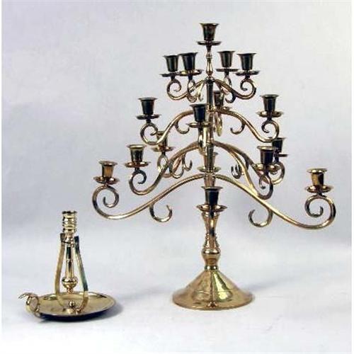 A BRASS MULTI-TIER CANDLEABRA<BR><BR>21"h. Together with a brass chamberstick lamp