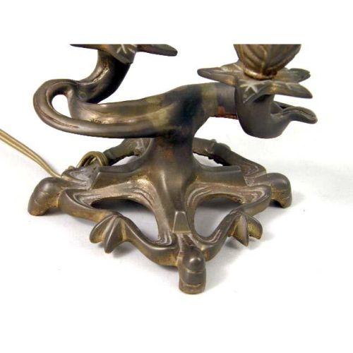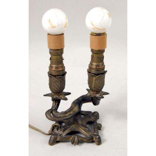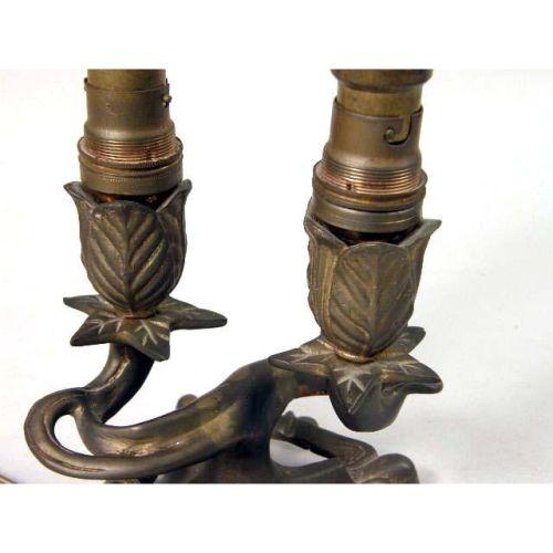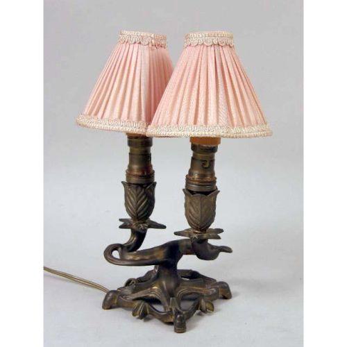 A BRASS TWO-BRANCH BOUILLOTTE STYLE LAMP<BR><BR>10-3/4"h