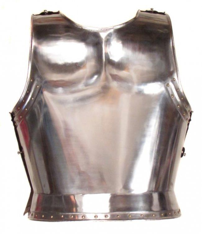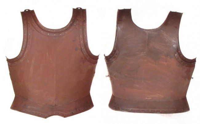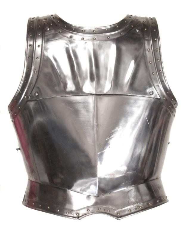 Steel, with fluted panel to breast and brass rivets.Mid-late 20th century. Light wear. Height 48.9 cm.