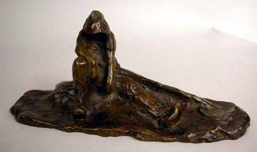 A BRONZE STATUE, TITLED "MAN WITH SHOVEL"; 8"l