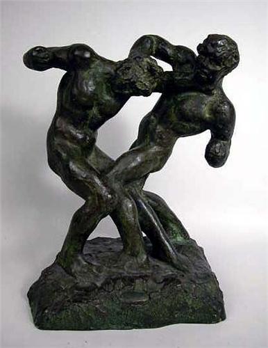 A BRONZE STATUE, TITLED "NAKED BOXERS" By S. Galt 15"h x 10"w x 8"d Provenance: Galerie Herve, paris 5-57