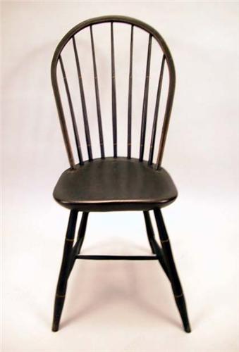 A BROWN AND YELLOW PAINTED BOW BACK WINDSOR SIDE CHAIR; Branded D. Hammond, Restored