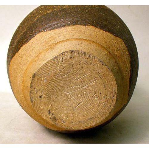 A BROWN GLAZED REDWARE VASE<BR><BR>The underside incised D.W. Jones, dated `69, 15 1/2"h