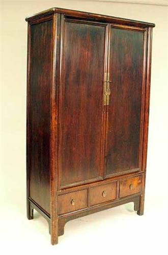 Chinese, probably Shanxi, the doors open to reveal a shelf fitted with two drawers below. Some wear. 6`1"h x 40 1/2"w x 21 1/2"d.