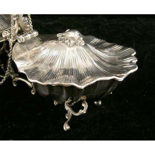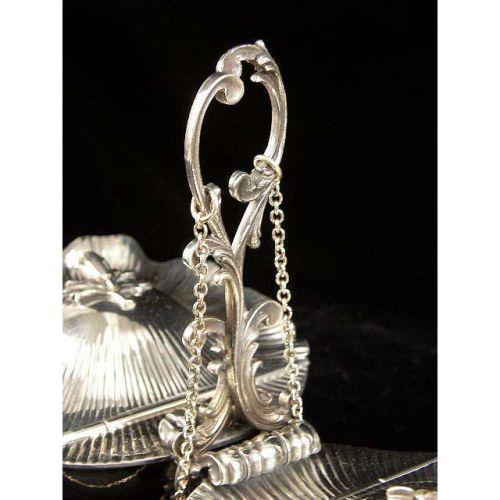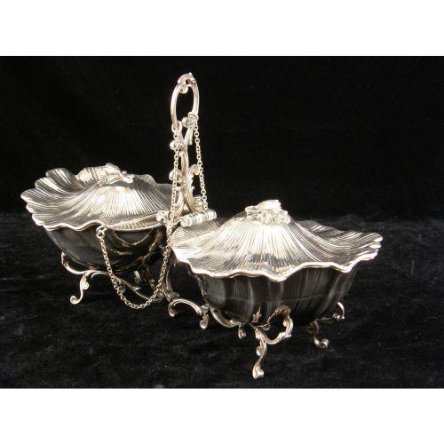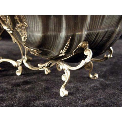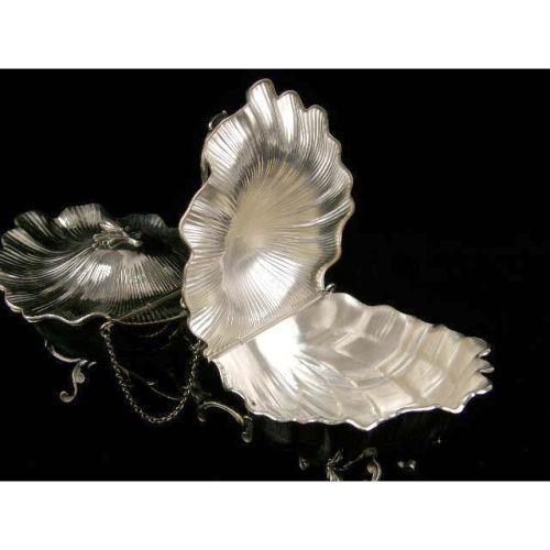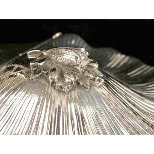 A BUCCELLATI STERLING SILVER HANDLED DOUBLE COVERED SHELL-FORM SERVING DISH<BR><BR>On scroll base, bud-form finials, 8"high over handle, 13-1/2"long, total weight apx. 29 T.O.