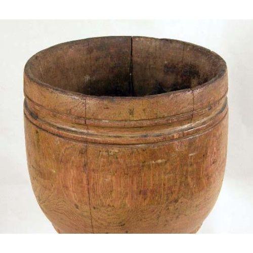A BURL WOOD MORTAR<BR><BR>Shrinkage and age cracks, 18"h x 8-3/4"dia.
