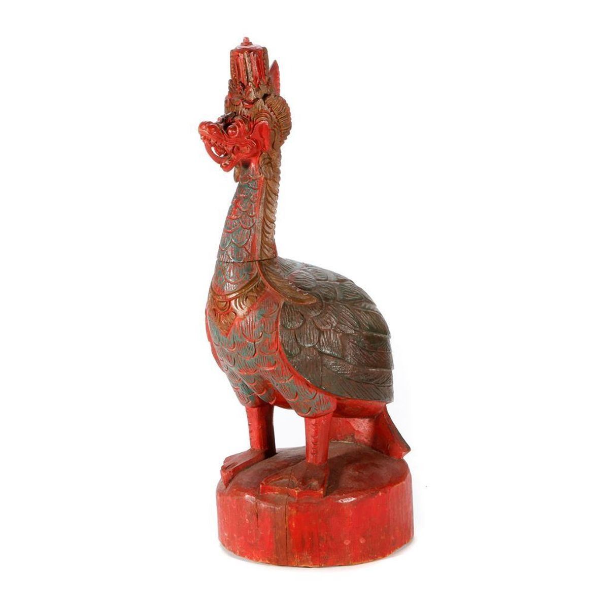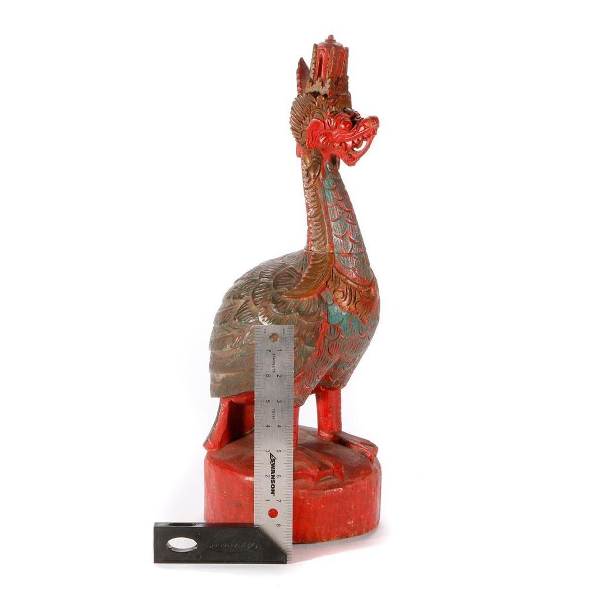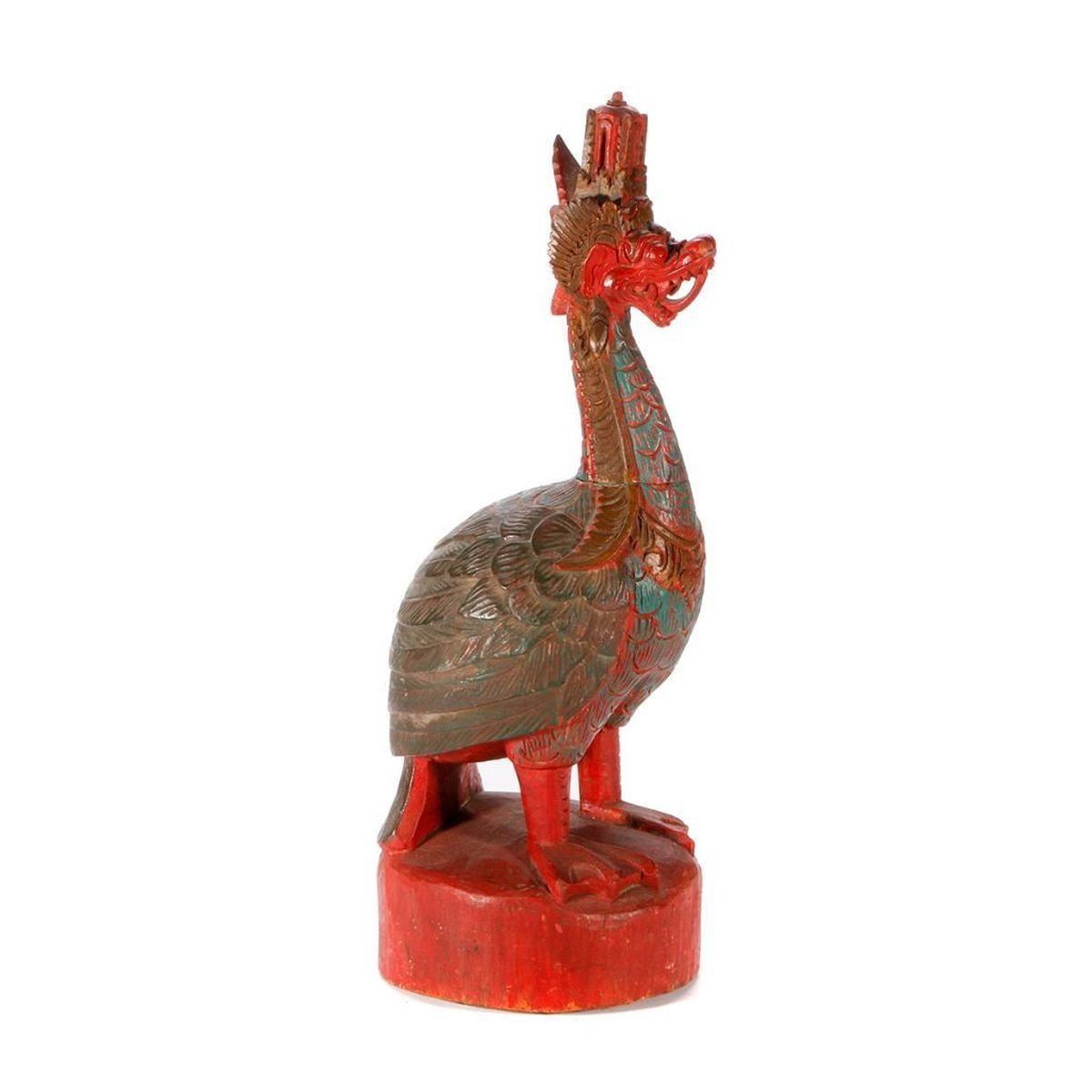 A Balinese wood carving of a mythical beast measuring 20 1/2 inches high x 7 1/2 diameter.
