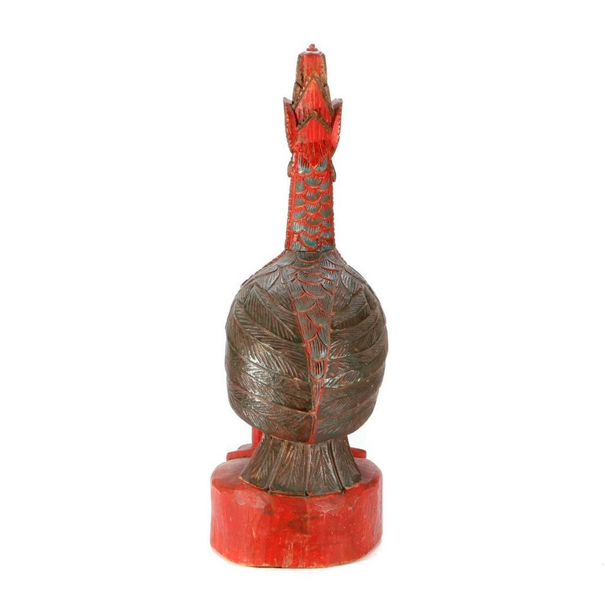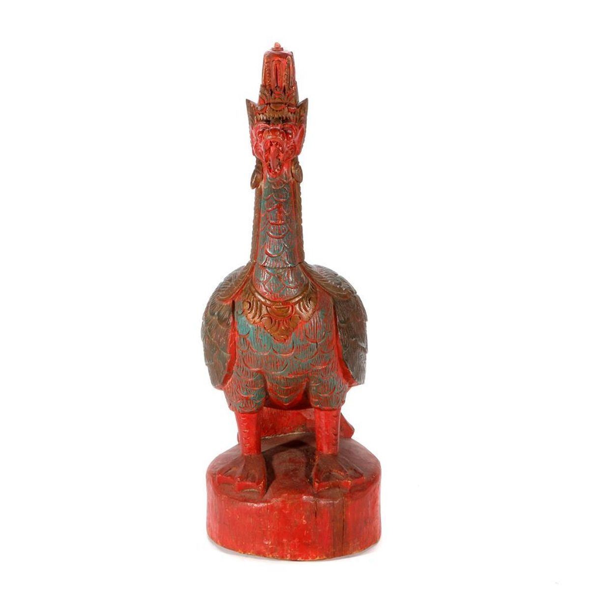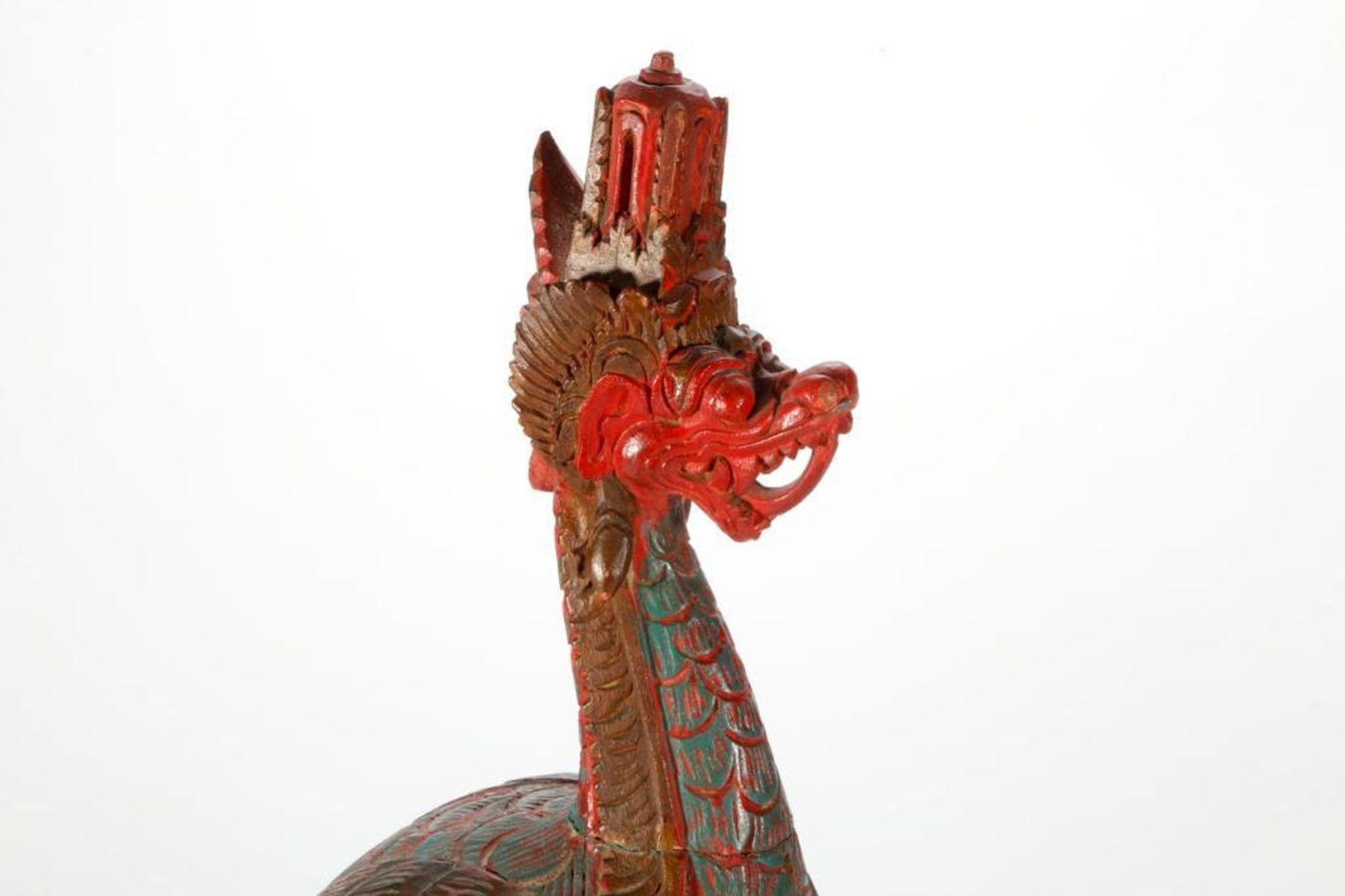 A Balinese wood carving of a mythical beast measuring 20 1/2 inches high x 7 1/2 diameter.