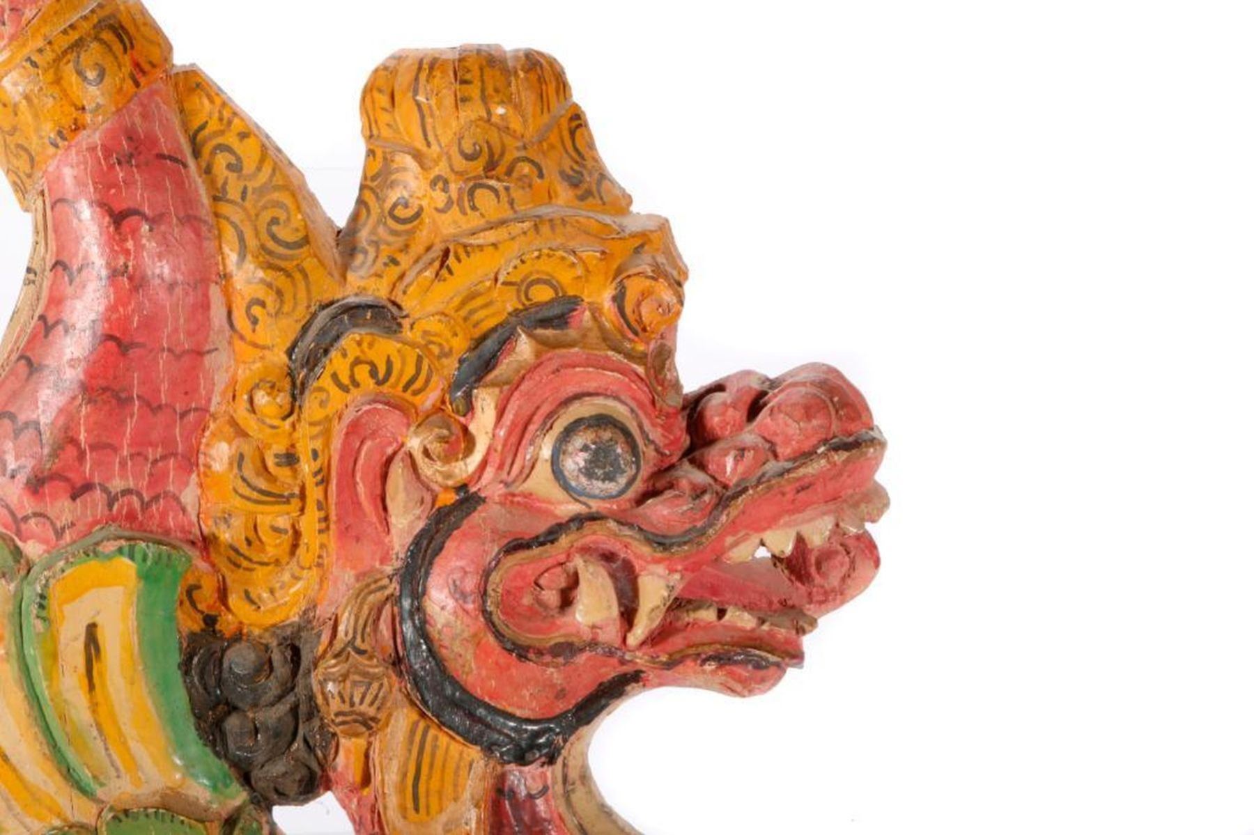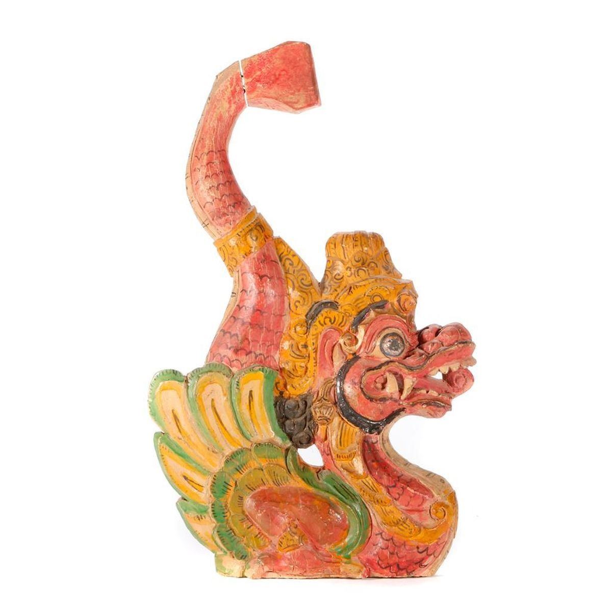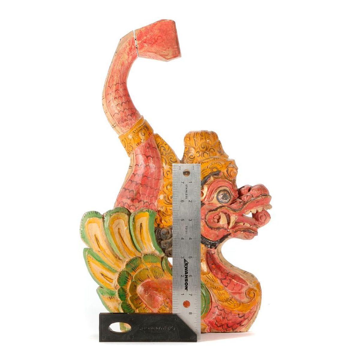 A carved wooden Balinese dragon measuring 18 inches high x 11 wide.