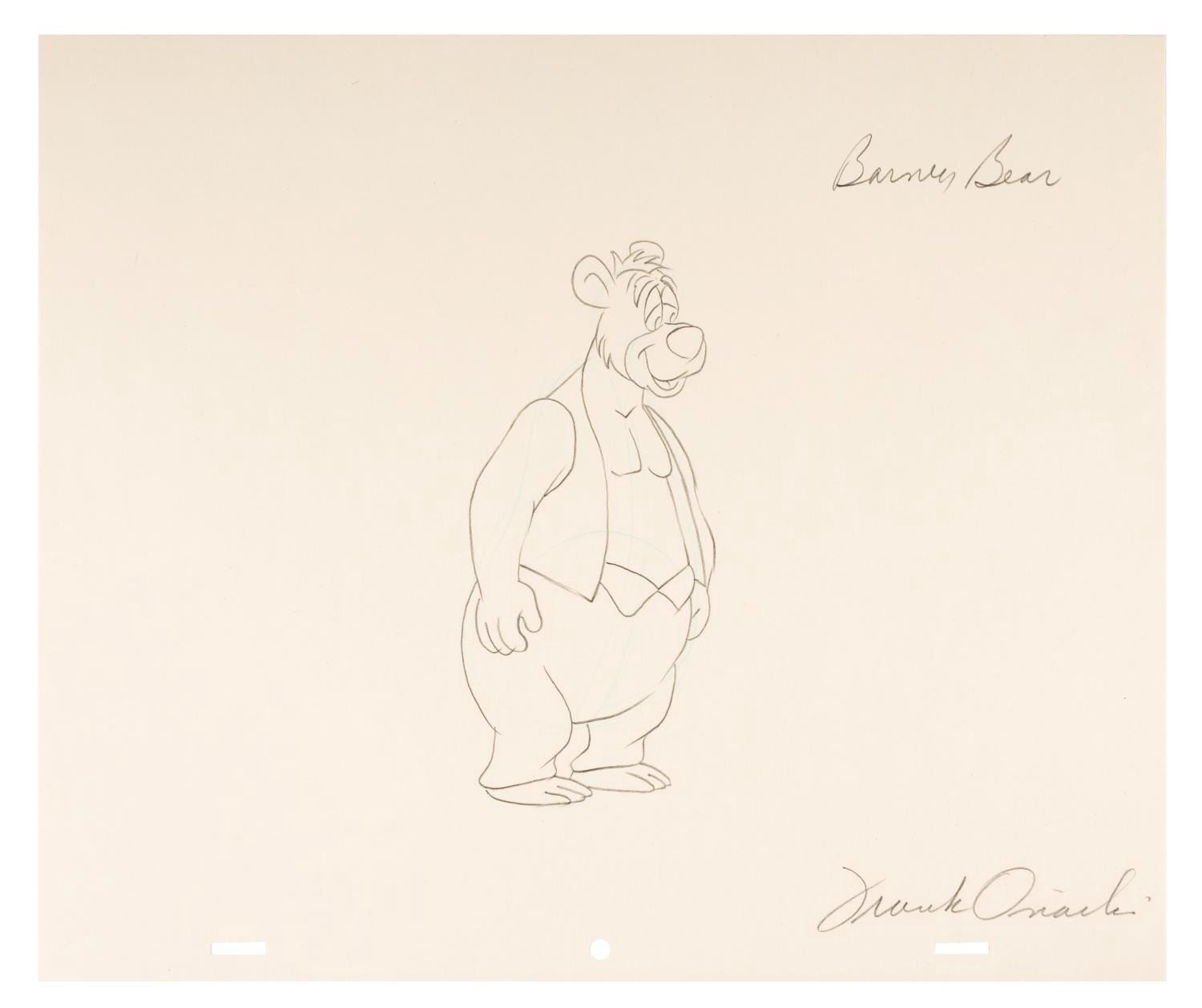 (Onaitis, 1980s-90s) A pencil drawing of Barney Bear by animator Frank Onaitis, signed at the bottom right edge. With a character image size of 3” x 6.25”, the art is in very good condition with light creases.