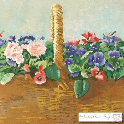 A Basket of Violets by Charles Apt is a SOLD OUT Limited Edition Serigraph on heavy paper. Hand Signed with Publisher Certificate of Authenticity. Measures appx. 30 x 40 (no border).