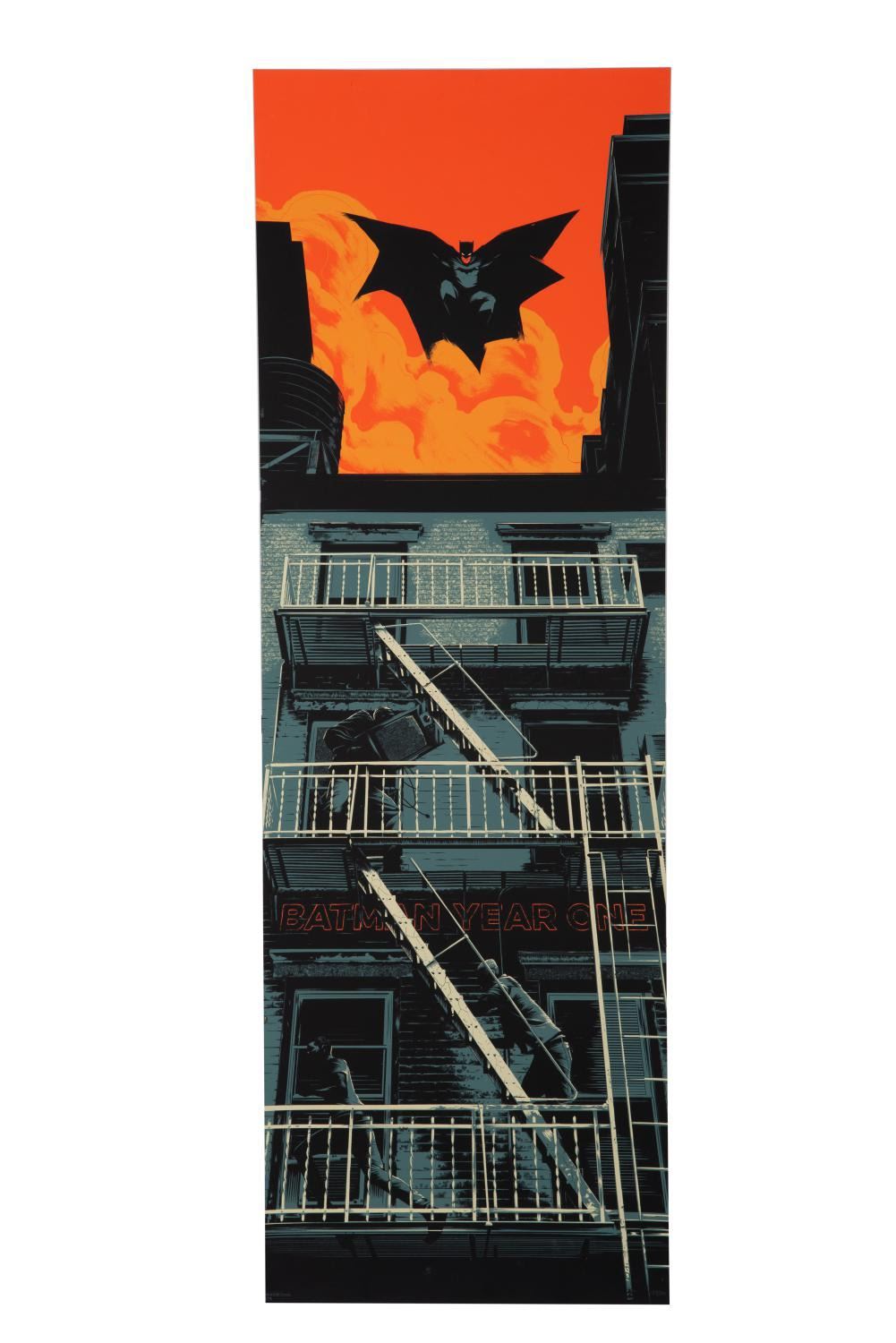 (DC Comics, 2014) A limited edition "Batman: Year One" print. The screen print was designed by artist Matt Taylor and released through Mondo Gallery in an edition size of 300. Measuring 32"x17", the print is in very fine condition.