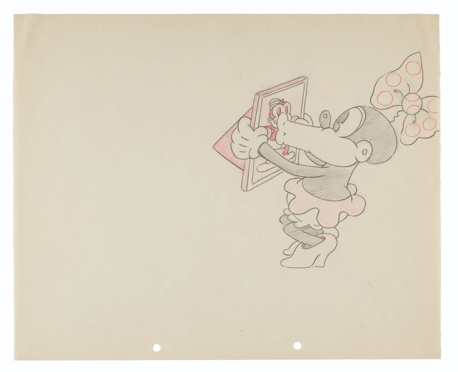 (Harman-Ising, 1932) An original storyboard drawing of Honey from the Looney Tunes short “Battling Bosko.” Accomplished in graphite and colored pencil, the drawing measures 9.75” x 12” with an image size of 6.25” x 6.5”, and is in very good condition with light edge wear from production use, and light discoloration from age.