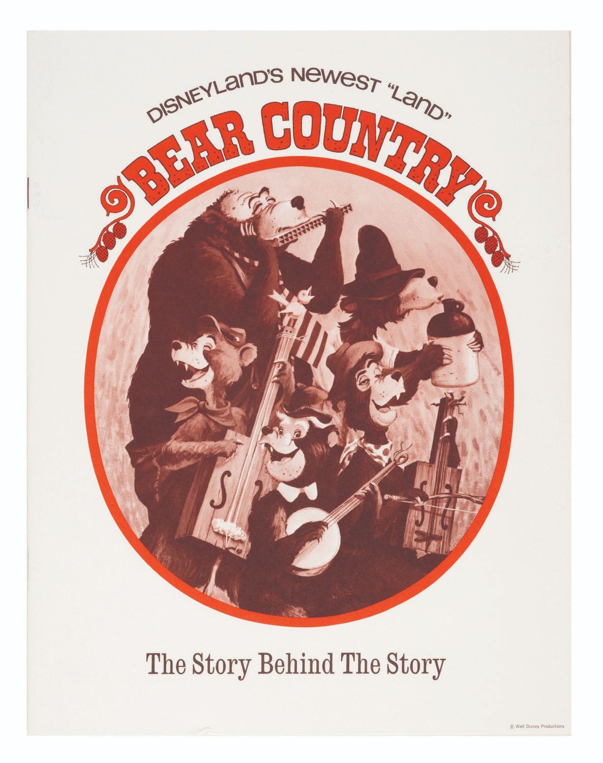 (Disneyland, 1972) A Bear Country: The Story Behind the Story Cast Member booklet. Bear Country and its main attraction, the Country Bear Jamboree, opened in Disneyland in 1972 after the success of the attraction at Walt Disney World. This manual was created to familiarize Cast Members with the new show as well as the features of Disneyland's newest land. The 17-page manual measures 8.5" x 11" and is in very good condition with minor edge and surface wear from use.