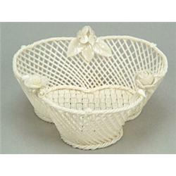 A Belleek First Period 'Shamrock' basket, of three-starand trefoil form and applied with flower s...
