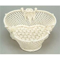 A Belleek First Period 'Shamrock' basket, of three-strand trefoil form and applied with flower sp...