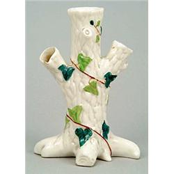 A Belleek First Period spill vase, modelled as a tree trunk with a spiral band of ivy, the latter...