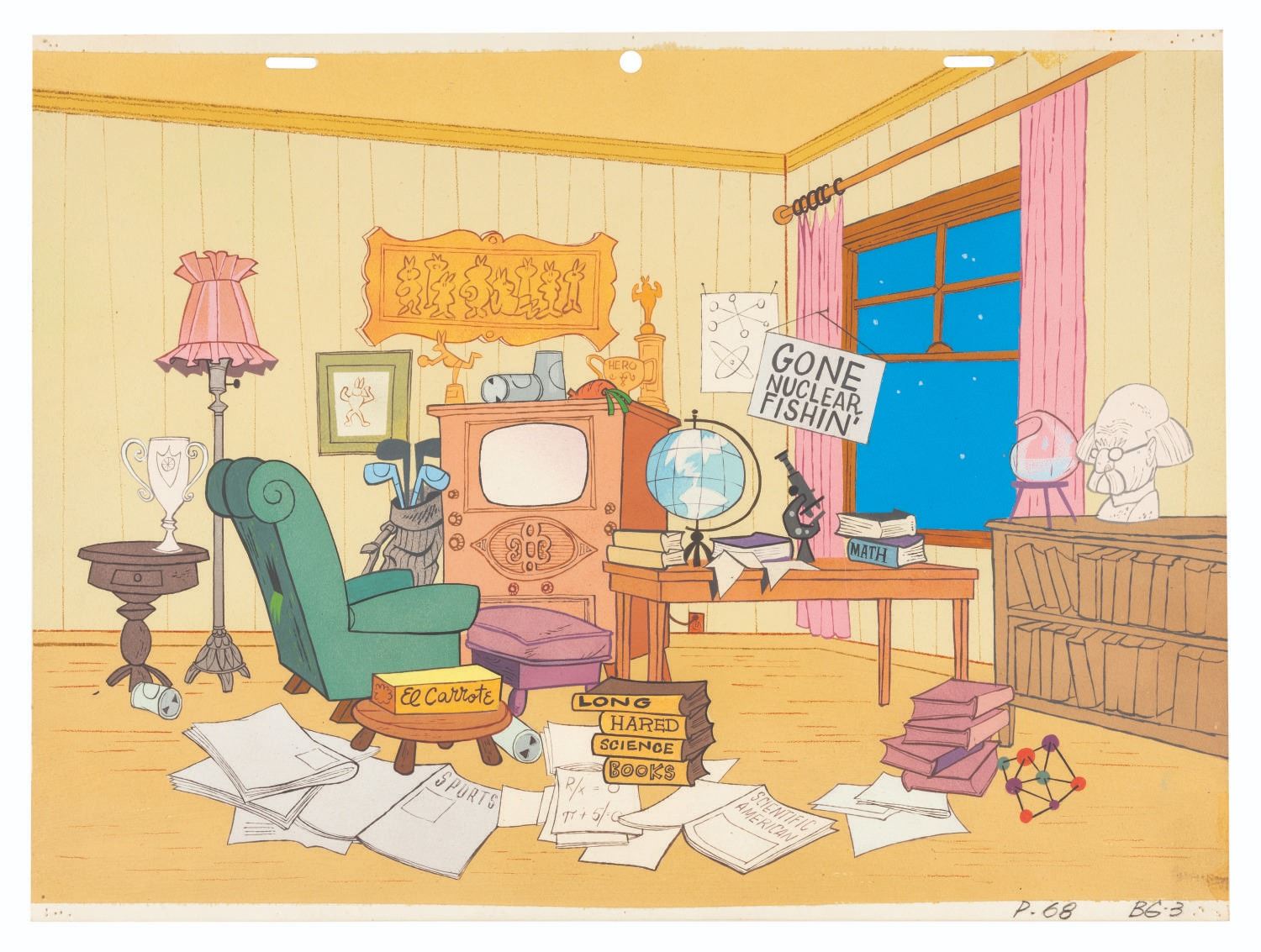 (Clampett, 1962) An original “Beany and Cecil” production background from the episode “Ben Hare.” Measuring 10.5” x 14”, the background is in fine condition with corner pinholes from production use, which do not affect the image.