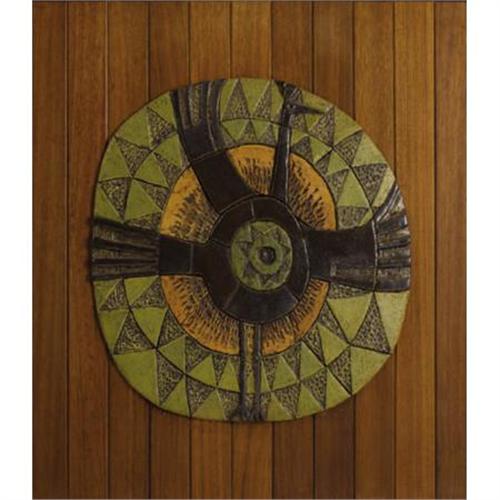 <B>A Contemporary Dutch Ceramic Abstract<BR></B></I>Ben Nadorp, The Netherlands<BR>1964<BR>M#41, entitled <I>Bird,</B></I> in low relief with orange, yellow and dark green<BR>Marks: Impressed <I>Delft</B></I> mark center left<BR>24 inches high x 29 inches wide x 1.5 inches deep<BR><BR><b>Shipping:</b> Requires 3rd Party Shipping (<a target="_blank" href="http://www.heritageauctions.com/common/shipping.php">view shipping information</a>)