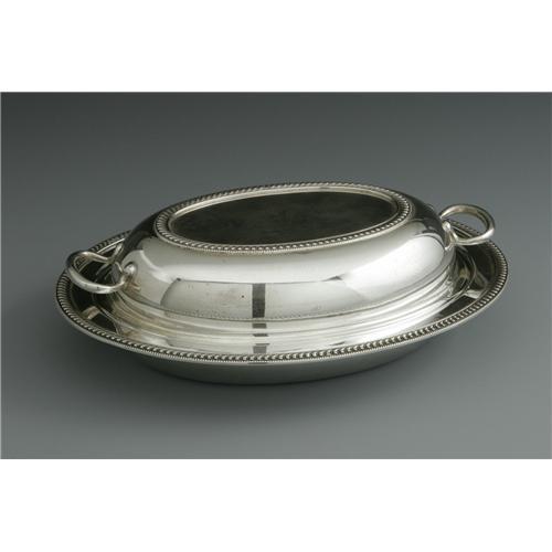 <B>An American Silver Entree Dish</B></I><BR>Bennett & Merwin, New Milford, CT, Early Twentieth Century<BR><BR>The oval covered entree dish, marked underside, total weight 34 Troy ounces<BR>3.5in. high x 11in. long