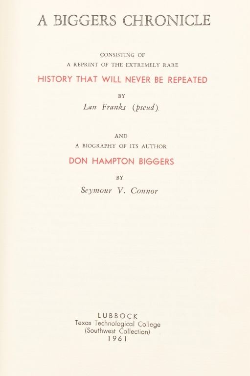 First edition, 1961 limited 1/500. Published by Texas Technological College, Lubbock.
