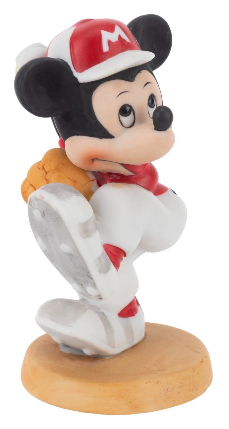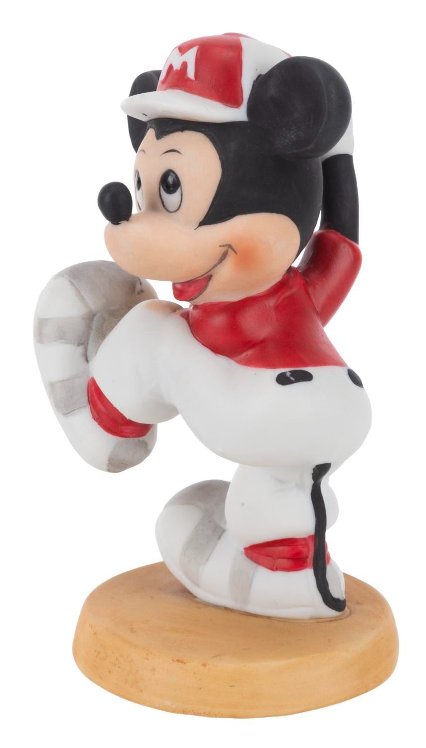 (Disney, 1980s-1990s) A bisque porcelain figurine of Mickey Mouse as a baseball pitcher. Measuring 4.25” tall, the figurine is in very good condition with very light wear from display.
