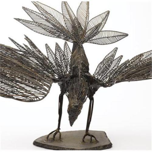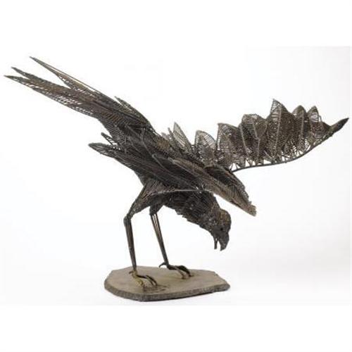 <B>A Black Wire Sculpture of a Bird</B></I><BR>Unknown maker<BR>Twentieth Century<BR>The bird standing with it's wings outstretched<BR>Unmarked<BR>17 inches high x 44 inches wide<BR><BR><b>Shipping:</b> Requires 3rd Party Shipping (<a target="_blank" href="http://www.heritageauctions.com/common/shipping.php">view shipping information</a>)
