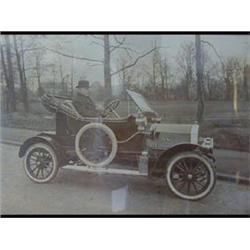 A Black and White Photograph of a car, with a large horn 20 x 28 cm