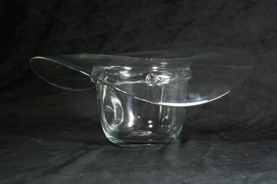 A Blenko Clear Glass Vase in the Form of a Cowboy Hat.
