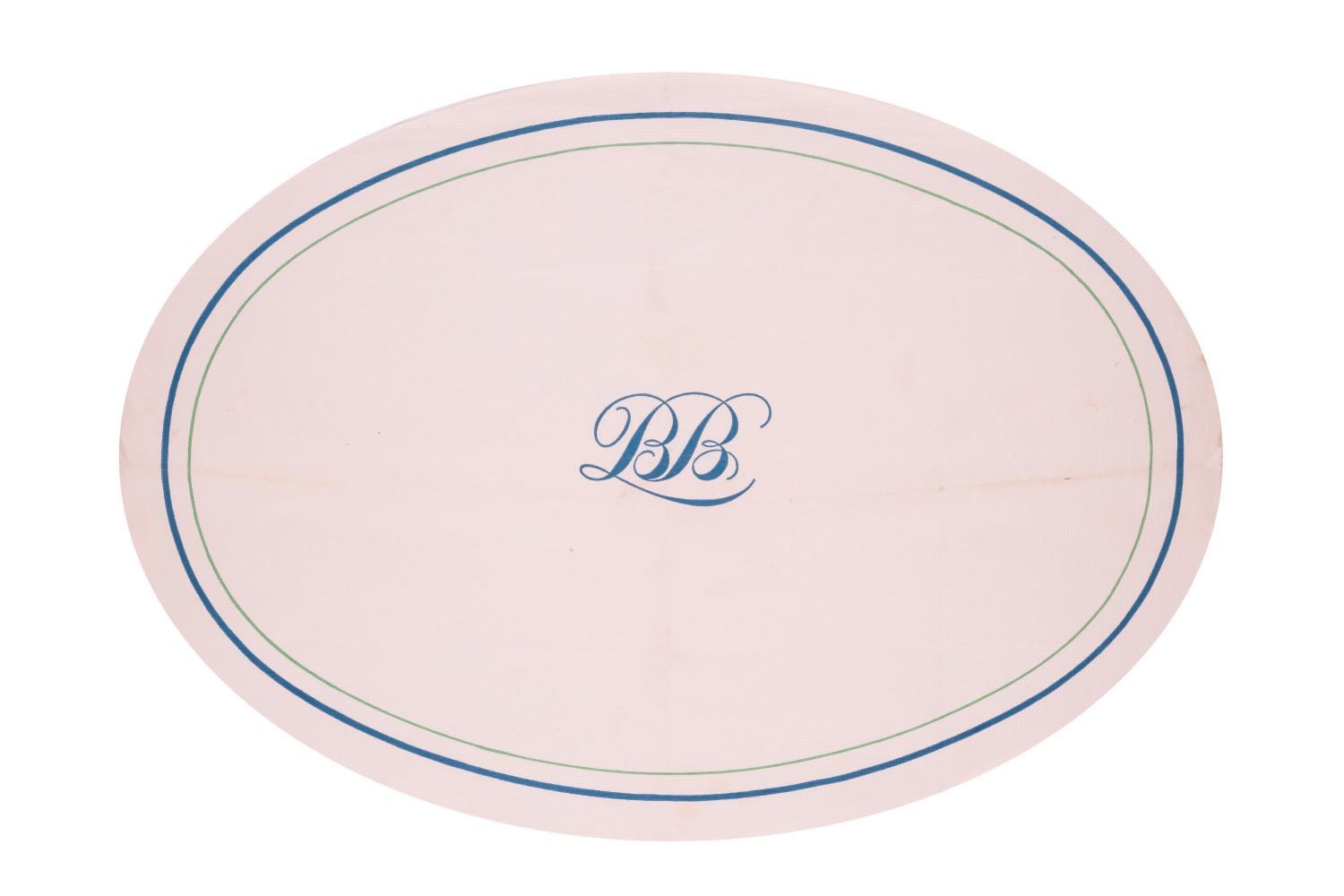 (Disneyland, 1967-1980s) A paper placemat from the Blue Bayou Terrace in New Orleans Square at Disneyland. The textural paper mat features the distinguished and elegant monogram of the table service restaurant. two-color Measuring 16.5"x11.5", the placemat is in good condition with yellowing, few creases and faint spots of discoloration from Park use, handling, and age.