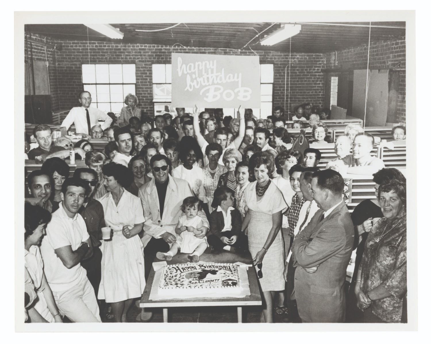 (Clampett, 1961) A photograph of Bob Clampett at his studio celebrating his birthday with his family and the crew of “Beany and Cecil.” Measuring 8” x 10”, the photo is in very good condition.