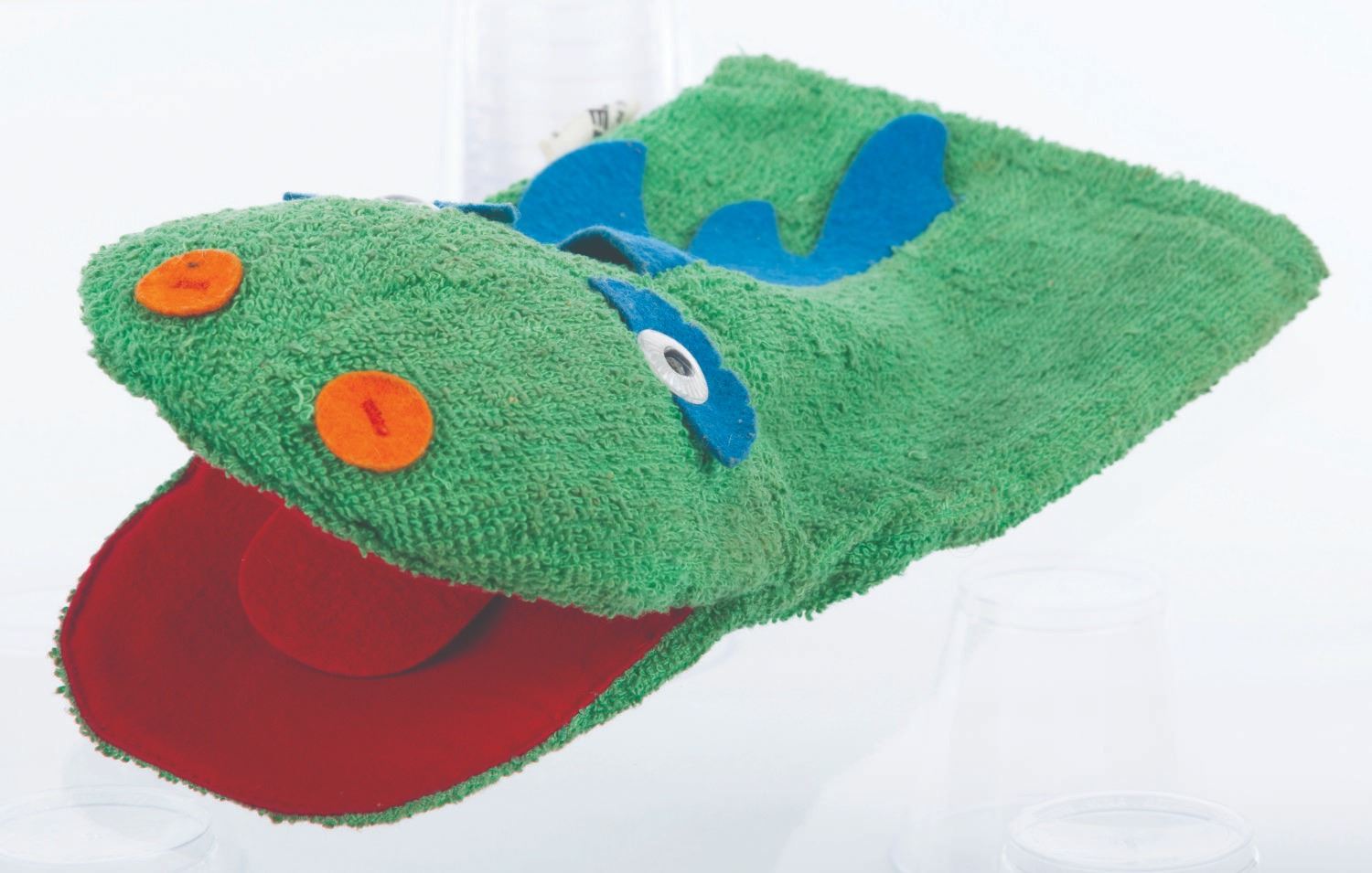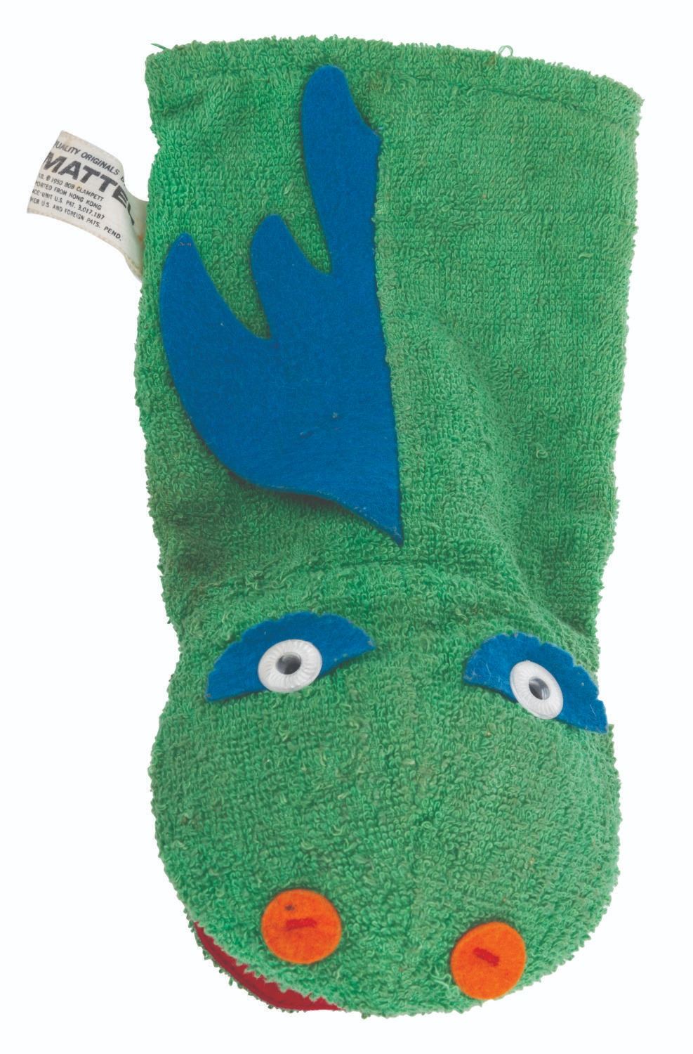 (Mattel, 1960s) A Cecil Hand Puppet by Mattel from the personal collection of Bob Clampett. Measuring 7.5” x 5.5” and 4” deep, the terrycloth puppet is in very good condition with light soiling and a 1” area of fraying to the bottom left.