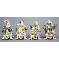 A Bow set of figures emblematic of the Four Seasons, typically modelled with attributes, on gilt...