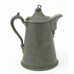 A Britannia metal flagon, with swan finial, scroll handle and decorated with engraved foliate mot...