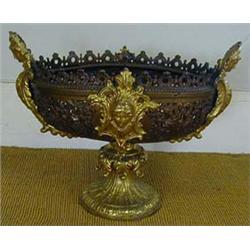 A Bronzed Table Centrepiece, the oval bowl with pierced decoration and applied gilt metal masks, 38 cm £150-200