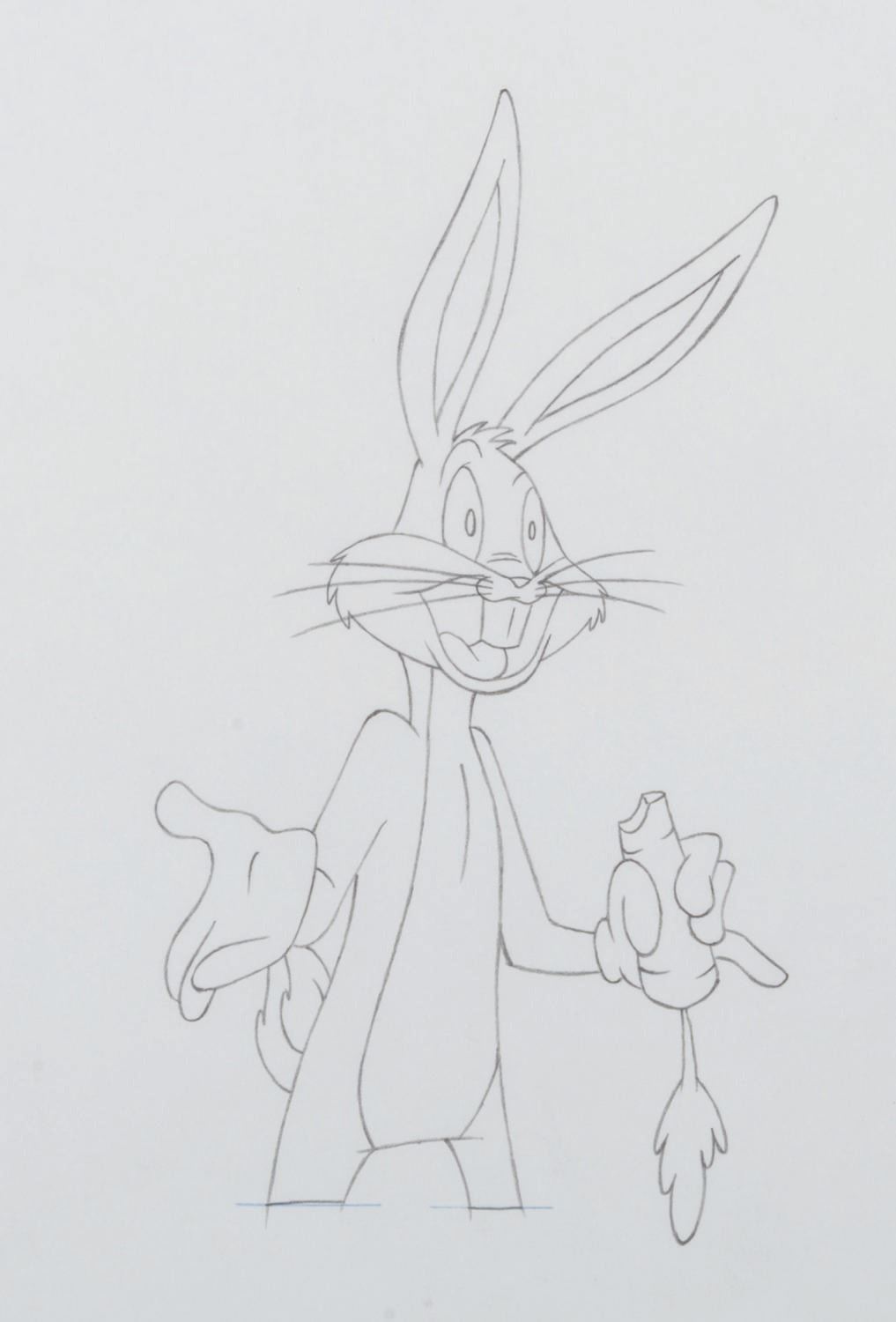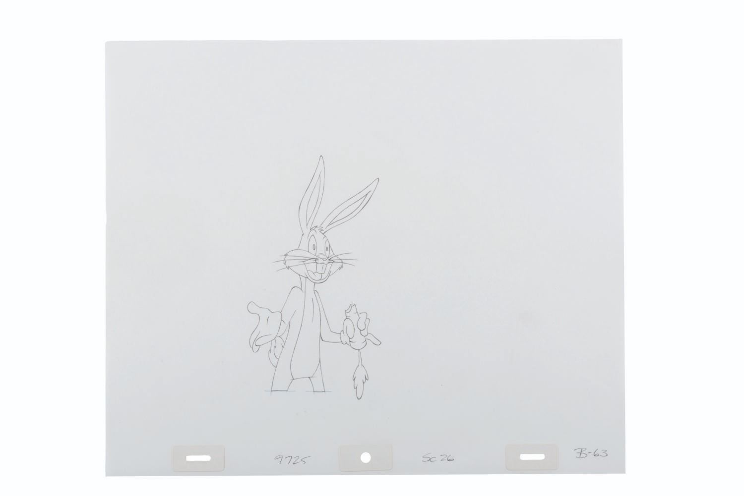 (Warner Bros., 1980s-90s) An animation drawing of Bugs Bunny from an unknown production. With an image size of 3.25" x 6" on 10.5" x 12.5" animation paper, the drawing accomplished in graphite is in fine condition.