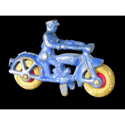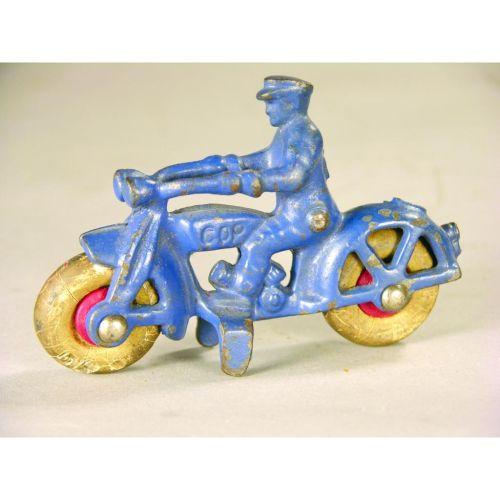 A.C. Williams Cast Iron Motor Cycle Cop. Very good original condition with rubber tires. 4 inches long.