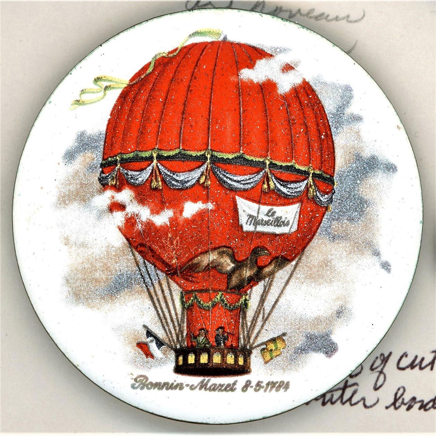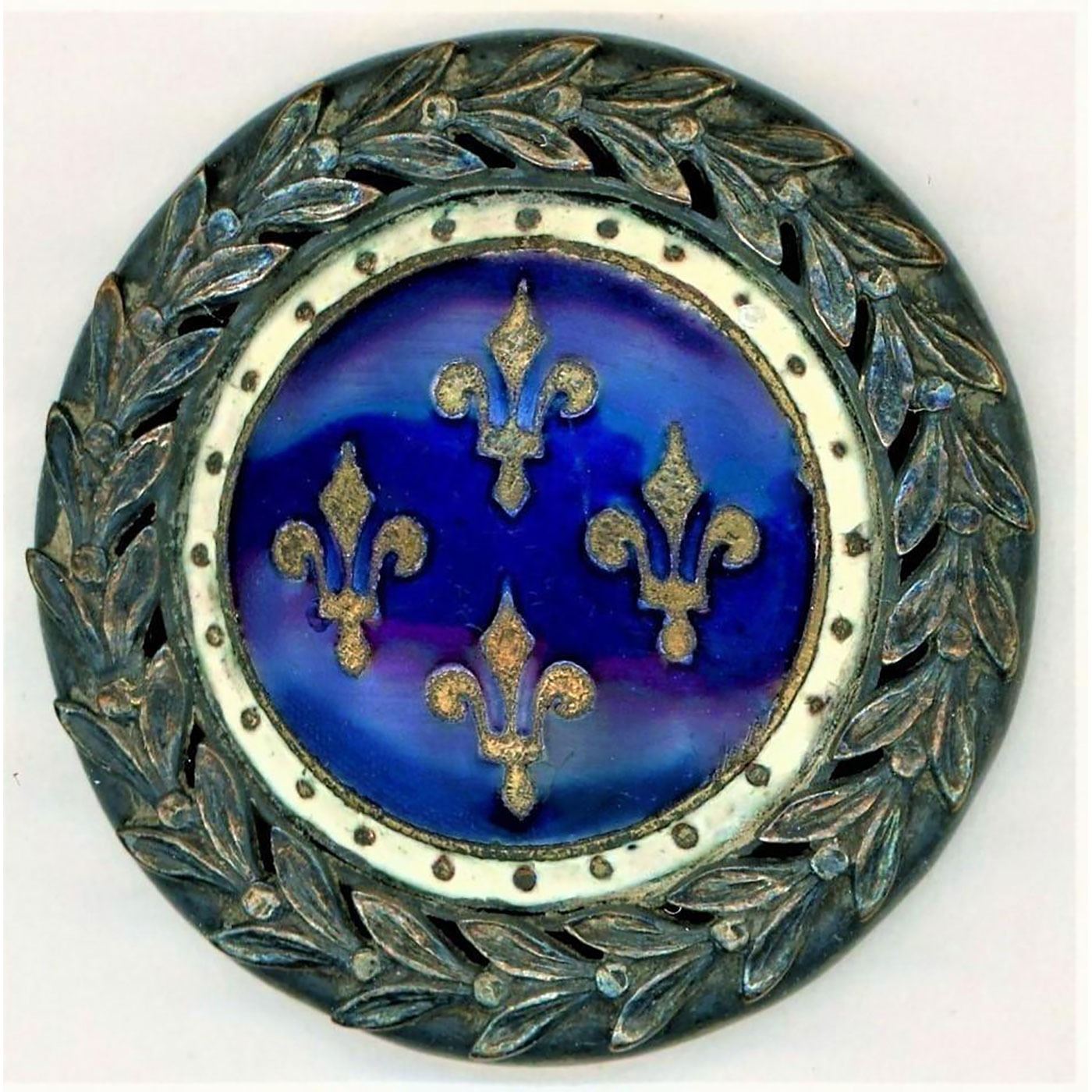 35 S/M/L 19/20th century enamel buttons in assorted techniques. This lot includes an extra large enamel Balloon by the English artist "JOY" from the late 1990's, a wonderful large cobalt blue 19th century enamel pf Fleur De Lis, a medium Herman Lowenstein Christmas tree, Cloisonne, Champleve, Polychrome, openwork, matte finish, pictorials and more.