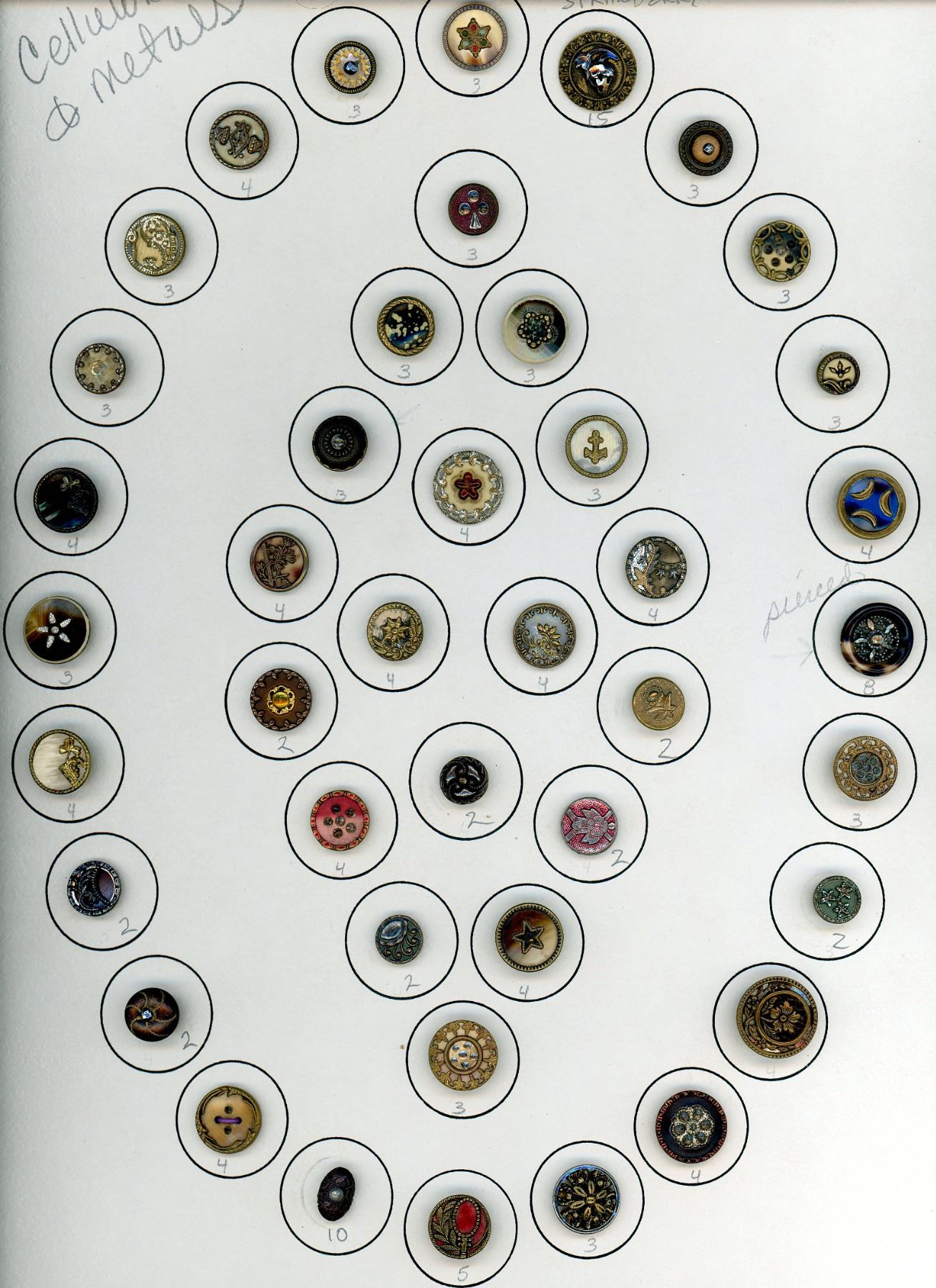 42 Small 19th century Victorian period metal examples. Here we have a card of desirable buttons from the 1890's Victorian era examples. Collectors and creators love these Victorian buttons utilizing celluloid in various ways. Nice card.