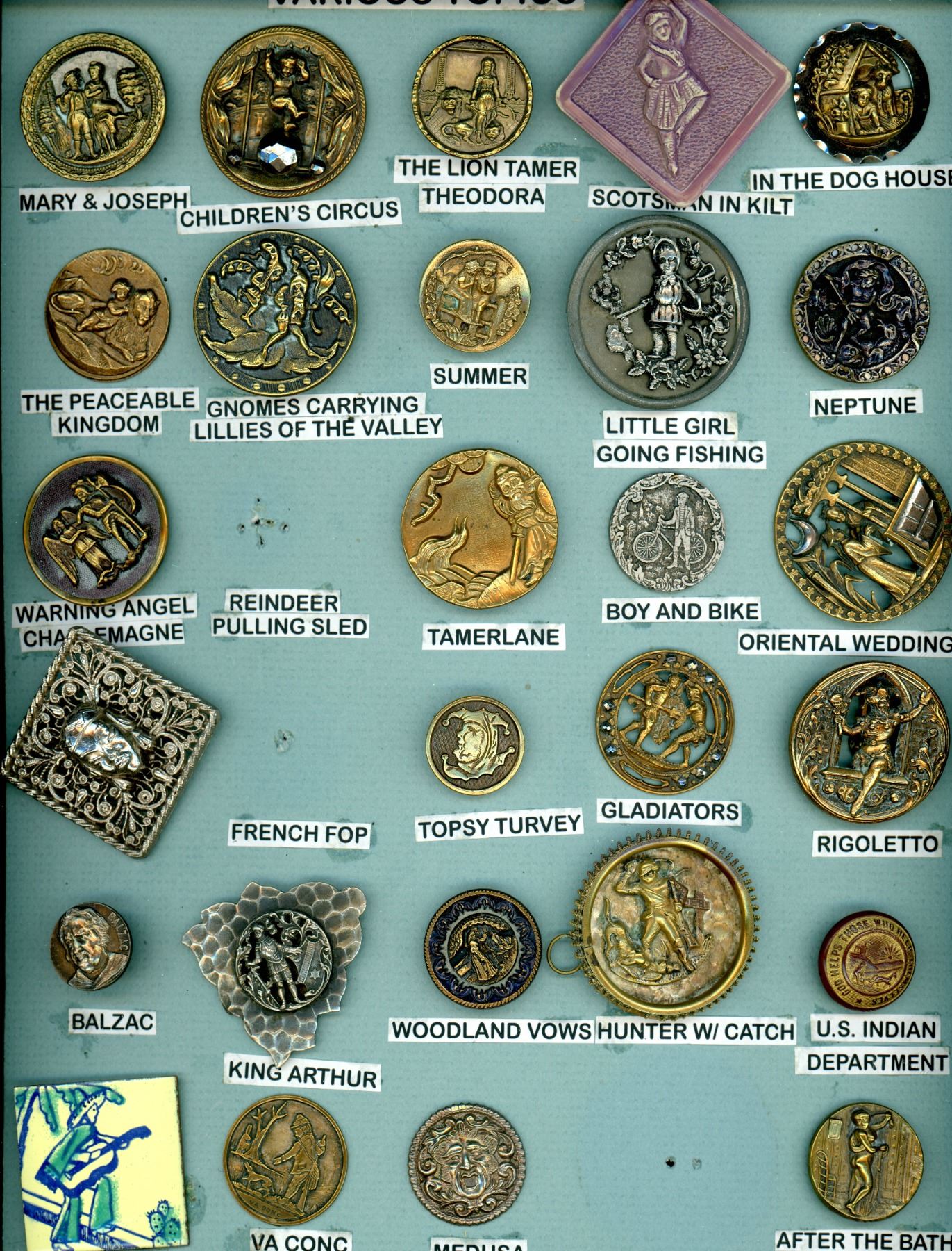 ConditionPLEASE NOTE: These buttons for the most part are antique and may have age related wear. We make every effort to point out any significant condition related concerns, but again they are antique and not new. We also cannot be responsible for replaced shanks or issues related to the backs of any buttons on multiple button cards as we do not remove these buttons to re-card them. Please contact us if you would like any further condition reports on any lot.