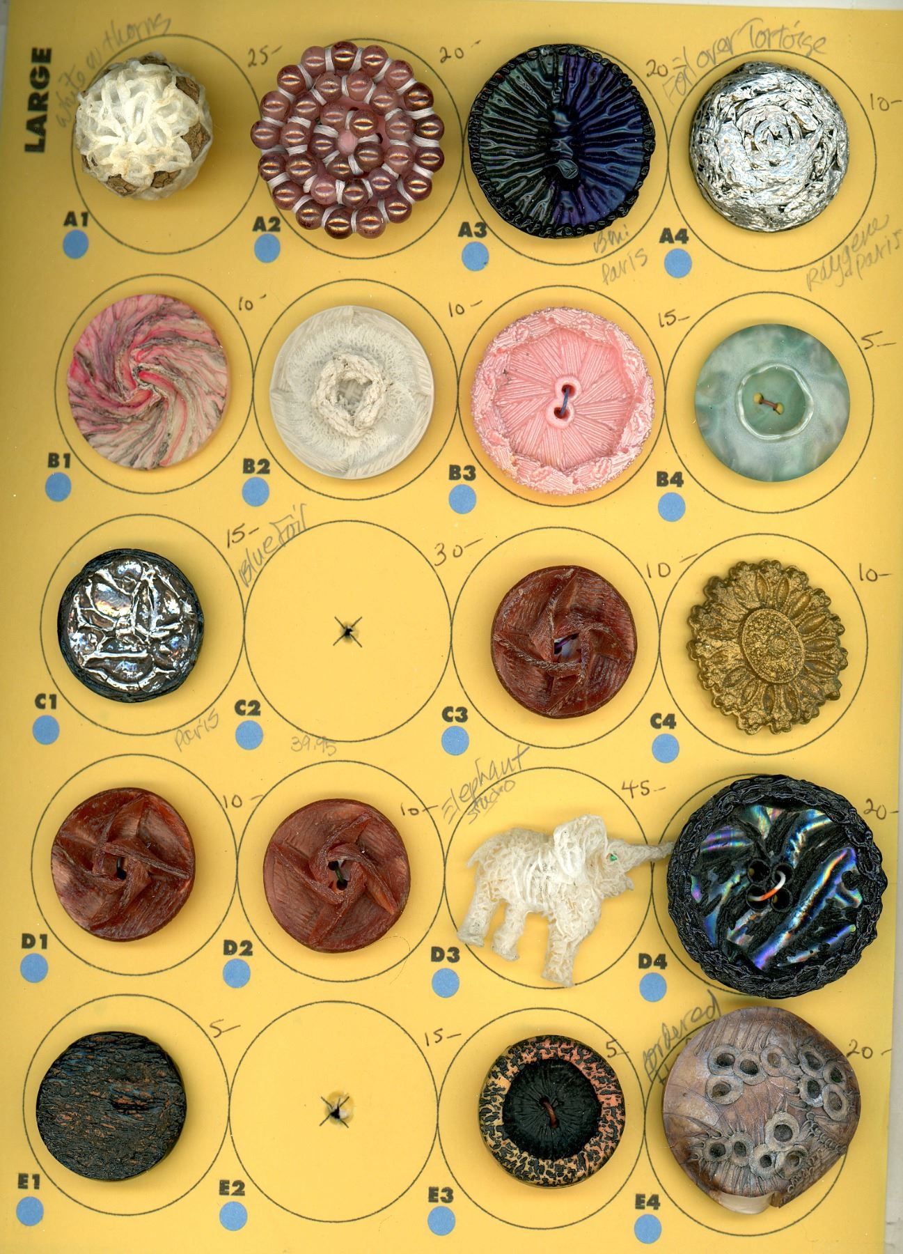 ConditionPLEASE NOTE: These buttons for the most part are antique and may have age related wear. We make every effort to point out any significant condition related concerns, but again they are antique and not new. We also cannot be responsible for replaced shanks or issues related to the backs of any buttons on multiple button cards as we do not remove these buttons to re-card them. Please contact us if you would like any further condition reports on any lot.