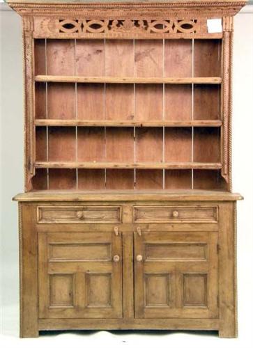 English or Irish, the doors opening to shelves, some repairs, wear, and replacements, 7`h x 4`10"w x 19"d. Provenance: Burren Pine, Gort, County, Galway
