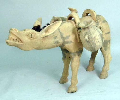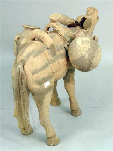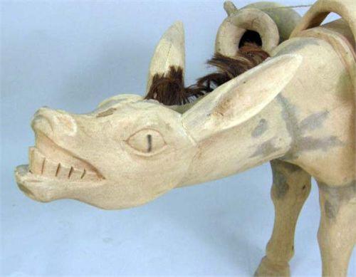 Of a donkey carrying water buckets, 29"h x 43"l
