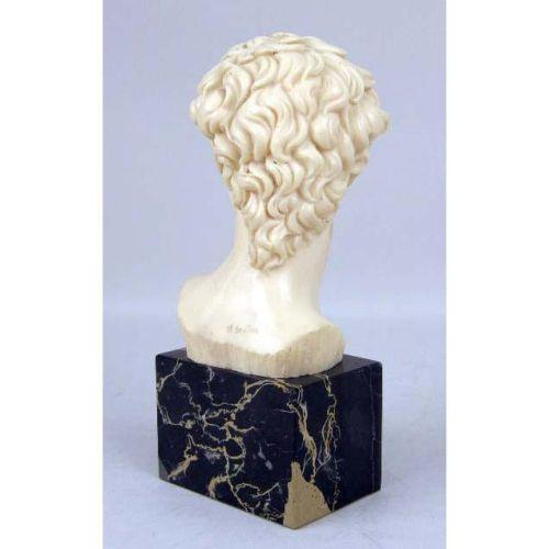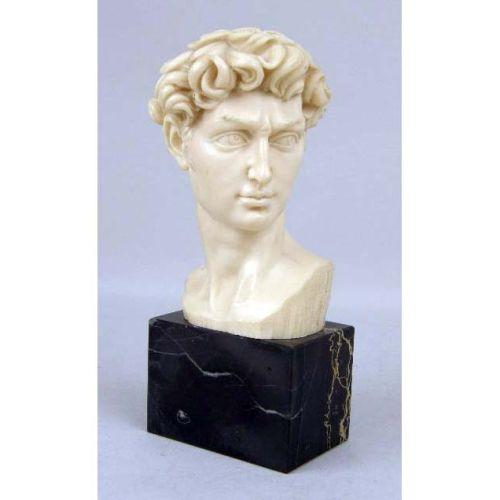 A CARVED COMPOSITION BUST OF MICHELANGELO`S DAVID<BR><BR>Signed "H. Santini", on a black marble base. Bust 8-3/4"high