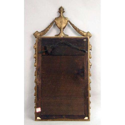 A CARVED, GESSOED, AND GILDED EMPIRE-STYLE WALL MIRROR<BR><BR>27" h x 13" w x 1" d.