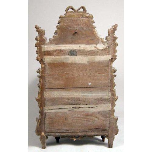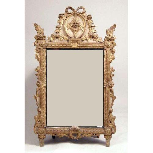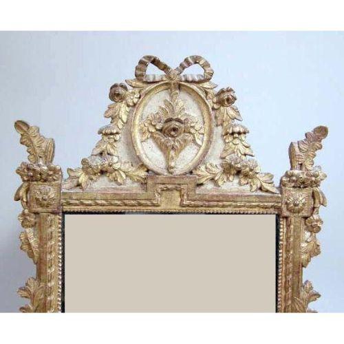 A CARVED GILTWOOD DECORATED NEOCLASSICAL STYLE LOOKING GLASS<BR><BR>Italian, wear and losses, 40"h x 26-1/2"w