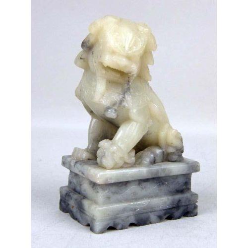 A CARVED HARDSTONE CHINESE LION<BR><BR>On squared base, 5-3/4"high
