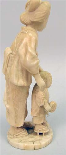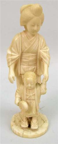 <b>A CARVED IVORY FIGURE OF A MOTHER AND CHILD</b>