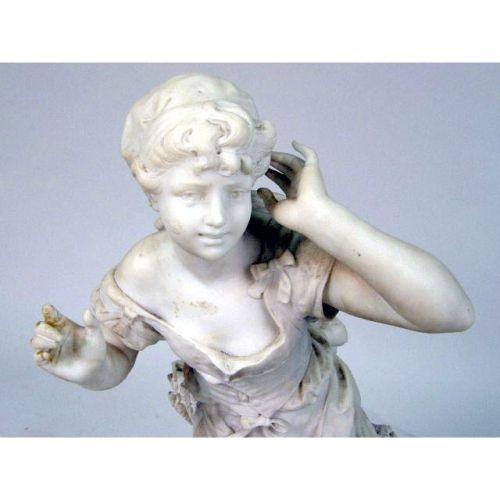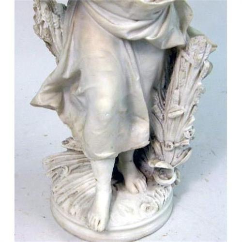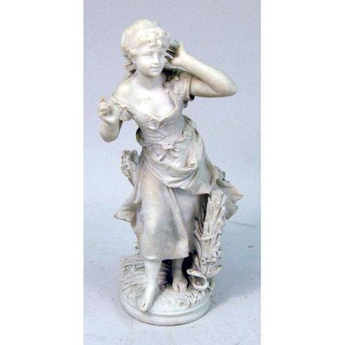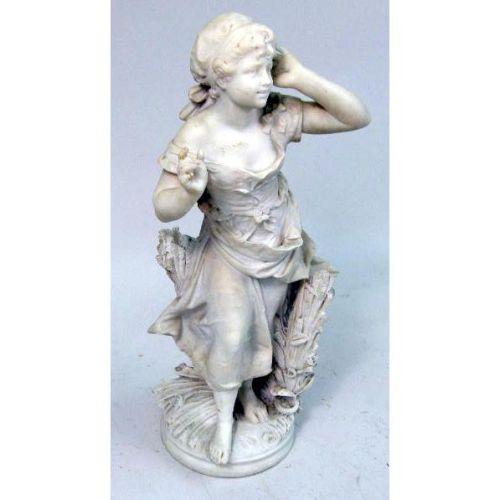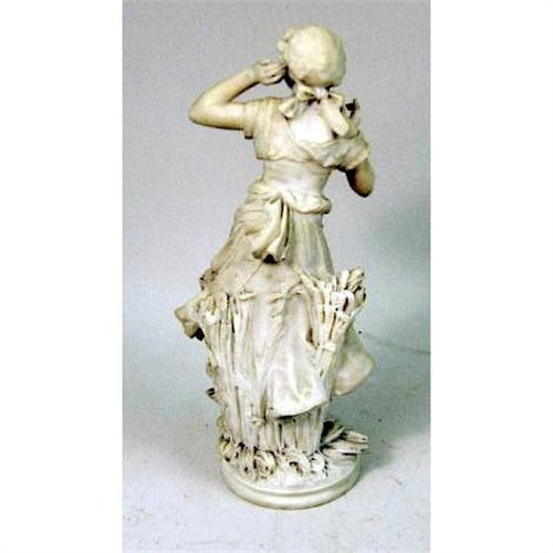 A CARVED MARBLE FIGURE OF A YOUNG MAIDEN<BR><BR>Standing near wheat sheaves, losses, 32"h